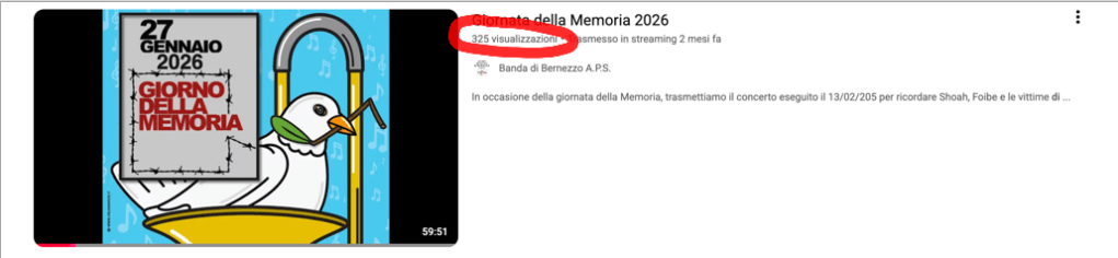 27 gennaio: in occasione della giornata della memoria diretta youtube del concerto della memoria.